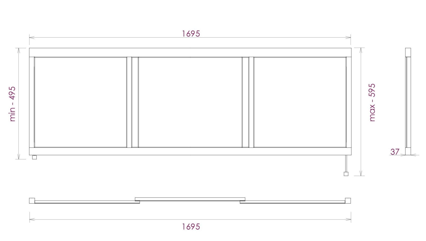 Ножки позволяют регулировать экран по высоте от 52 до 60 см, благодаря этому экран является универсальным и впишется в интерьер любой ванной комнаты.