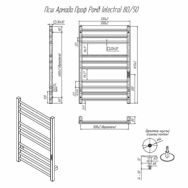 Электрический полотенцесушитель Altasan АрмадаПроф АрмадаПрофР8050ЧМ Черный муар 80х50