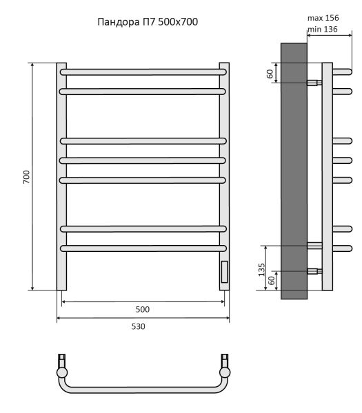 Полотенцесушитель электрический Aquatek (Акватек) Пандора П7 500х700 мм, подключение скрытое к сети электропитания / электропровод с вилкой, с терморегулятором и таймером quick touch, нержавеющая сталь AISI 201, гарантия 5 летХарактеристики:32х18, ВСТРОЕННЫЙ ДИММЕРКомплектация:полотенцесушитель;