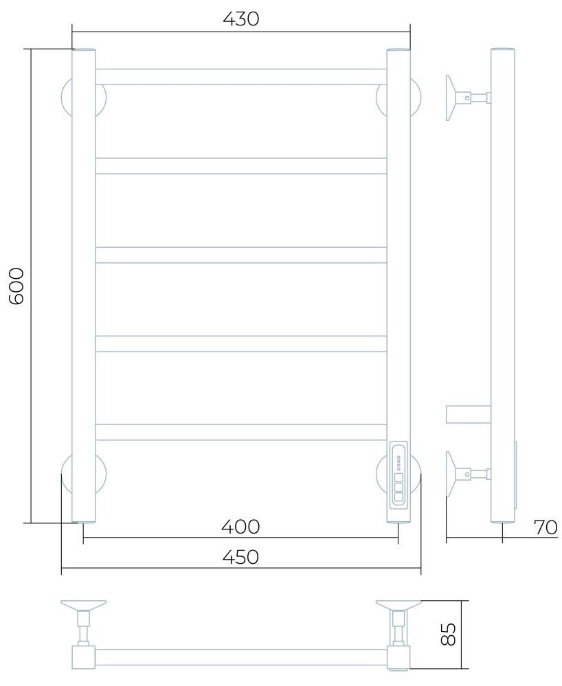 Заглушки на концах стоек, тип диммера - кнопочный (Quick Touch), крепления к стене.