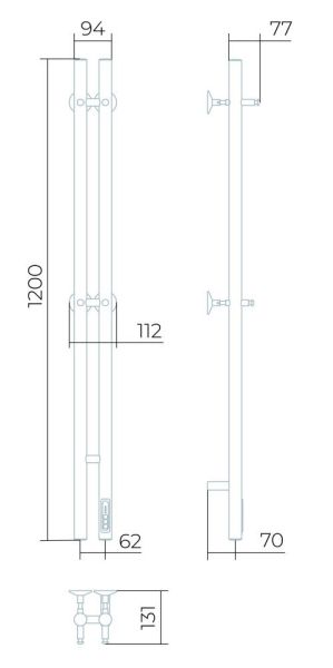 Заглушки на концах стоек, тип диммера - кнопочный (Quick Touch), крепления к стене.