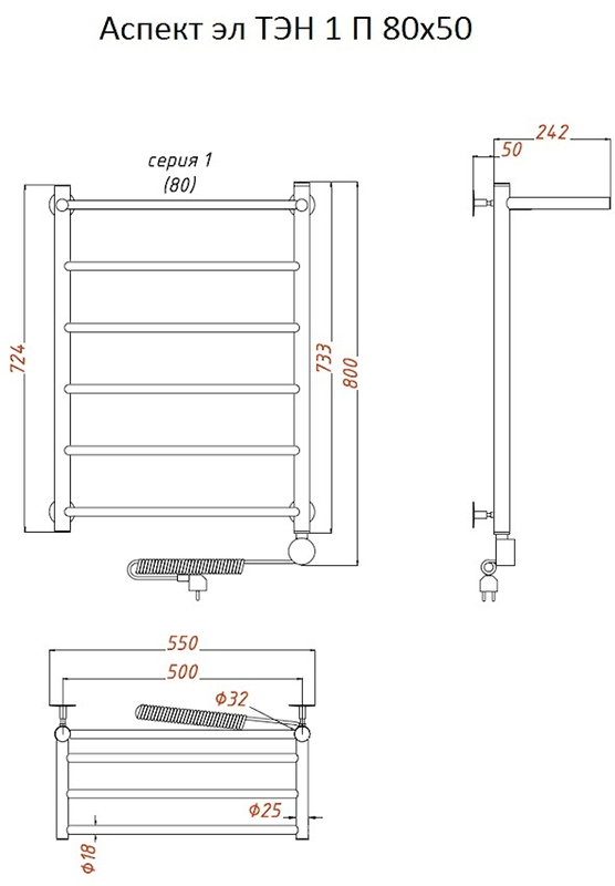 Внимание! Для скрытого монтажа электропроводки необходимо приобрести комплект скрытого подключения.Полотенцесушитель электрический комплектуется ТЭНом с терморегулятором и таймером.Изделие производится из нержавеющей стали AISI 201. Вертикальные трубы d -32 мм., для горизонтальных вставок используется труба d — 18 мм.Нагревательным элементом в полотенцесушителе является ТЭН. Полотенцесушитель заполнен бытовым антифризомЭкономичность: ТЭН нагревает антифриз до нужной температуры и выключается, далее при остывании полотенцесушителя он включается опять. Таким образом он работает не постоянно и получается, что ТЭН потребляет электричество не 300 Вт, а порядка 100 — 150 ВтМощность электрического прибора порядка 100 Вт при стоимости 1 Вт — 5 руб несложно посчитать: 100Вт х 24 = 2,4 кВт в сутки. Стоимость эксплуатации изделия за сутки 2,4 кВт х 5 руб. = 12 руб. При максимальной температуре расход электричества за 30 дней составит порядка 360 руб. При условии если сушка работает круглосуточно на максимальной температуре.Удобство монтажа: Полотенцесушитель крепится к стене на четыре держателя. Изначально ТЭН не установлен в полотенцесушитель для безопасной транспортировки, его можно установить, как справа, так и слева предварительно перевернув полотенцесушитель вверх ногами и выкрутив заглушку с нужной стороны на место в которое установится ТЭН.Примечание. Внимательно изучите инструкцию по установке ТЭНа!Скрытое подключение: Для скрытого монтажа электропроводки необходимо приобрести комплект скрытого подключения.Подключение в розетку: В комплекте с ТЭНом имеется шнур с вилкой, который будет необходим при подключении к розетке.