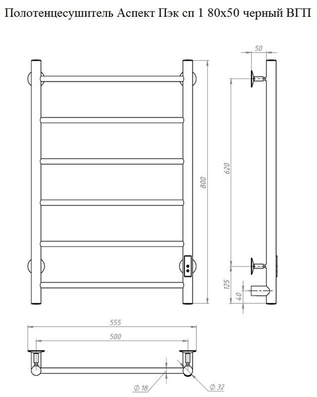 Электрический полотенцесушитель Тругор Аспект Пэк сп 1 80x50см белый АспектПэксп1/8050белыйВГП