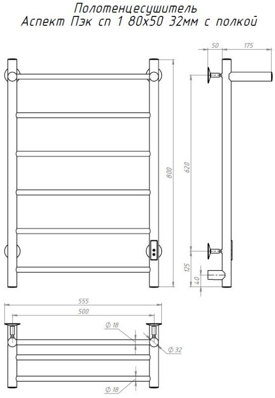 Электрический полотенцесушитель Тругор Аспект Пэк сп 1 П с полкой 80x50см хром АспектПэксп1П/805032