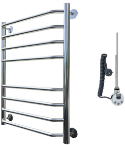 Внимание! Для скрытого монтажа электропроводки необходимо приобрести комплект скрытого подключения. Полотенцесушитель электрический комплектуется ТЭНом с терморегулятором и таймером. Изделие производится из нержавеющей стали AISI 201. Вертикальные трубы d -32 мм., для горизонтальных вставок используется труба d — 18 мм. Нагревательным элементом в полотенцесушителе является ТЭН. Полотенцесушитель заполнен бытовым антифризом.Экономичность: ТЭН нагревает антифриз до нужной температуры и выключается, далее при остывании полотенцесушителя он включается опять. Таким образом он работает не постоянно, и получается, что ТЭН потребляет электричество не 300 Вт, а порядка 100 — 150 Вт.Мощность электрического прибора порядка 100 Вт при стоимости 1 Вт — 5 руб несложно посчитать: 100Вт х 24 = 2,4 кВт в сутки. Стоимость эксплуатации изделия за сутки 2,4 кВт х 5 руб. = 12 руб. При максимальной температуре расход электричества за 30 дней составит порядка 360 руб. При условии если сушка работает круглосуточно на максимальной температуре.Удобство монтажа: Полотенцесушитель крепится к стене на четыре держателя. Изначально ТЭН не установлен в полотенцесушитель для безопасной транспортировки, его можно установить, как справа, так и слева предварительно перевернув полотенцесушитель вверх ногами и выкрутив заглушку с нужной стороны на место в которое установится ТЭН.Примечание. Внимательно изучите инструкцию по установке ТЭНа!Скрытое подключение: Для скрытого монтажа электропроводки необходимо приобрести комплект скрытого подключения.Подключение в розетку: В комплекте с ТЭНом имеется шнур с вилкой, который будет необходим при подключении к розетке.