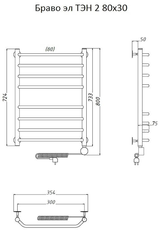 Электрический полотенцесушитель Тругор Браво 1 80x30см хром Браво2/элТЭН8030
