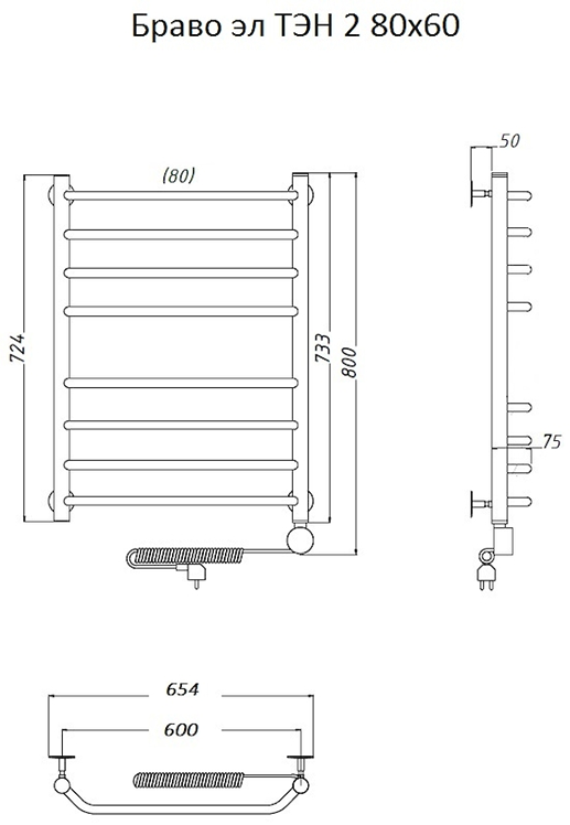 Электрический полотенцесушитель Тругор Браво 2 80x60см хром Браво2/элТЭН8060