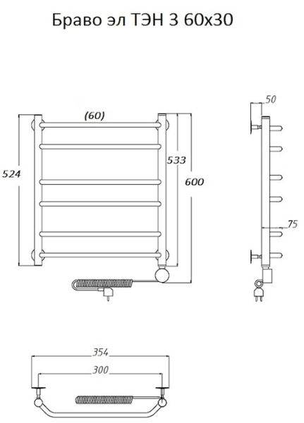 Электрический полотенцесушитель Тругор Браво 3 60x30см хром Браво3/элТЭН6030