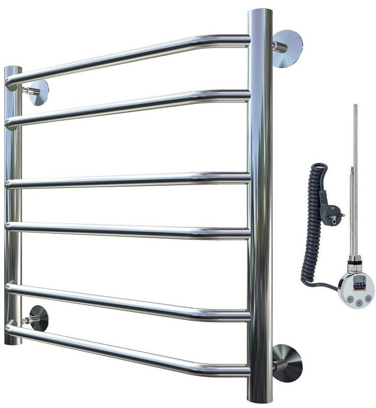 Внимание! Для скрытого монтажа электропроводки необходимо приобрести комплект скрытого подключения.Полотенцесушитель электрический комплектуется ТЭНом с терморегулятором и таймером.Изделие производится из нержавеющей стали AISI 201. Вертикальные трубы d -32 мм., для горизонтальных вставок используется труба d — 18 мм.Нагревательным элементом в полотенцесушителе является ТЭН. Полотенцесушитель заполнен бытовым антифризомЭкономичность: ТЭН нагревает антифриз до нужной температуры и выключается, далее при остывании полотенцесушителя он включается опять. Таким образом он работает не постоянно и получается, что ТЭН потребляет электричество не 300 Вт, а порядка 100 — 150 ВтМощность электрического прибора порядка 100 Вт при стоимости 1 Вт — 5 руб несложно посчитать: 100Вт х 24 = 2,4 кВт в сутки. Стоимость эксплуатации изделия за сутки 2,4 кВт х 5 руб. = 12 руб. При максимальной температуре расход электричества за 30 дней составит порядка 360 руб. При условии если сушка работает круглосуточно на максимальной температуре.Удобство монтажа: Полотенцесушитель крепится к стене на четыре держателя. Изначально ТЭН не установлен в полотенцесушитель для безопасной транспортировки, его можно установить, как справа, так и слева предварительно перевернув полотенцесушитель вверх ногами и выкрутив заглушку с нужной стороны на место в которое установится ТЭН.Примечание. Внимательно изучите инструкцию по установке ТЭНа!Скрытое подключение: Для скрытого монтажа электропроводки необходимо приобрести комплект скрытого подключения.Подключение в розетку: В комплекте с ТЭНом имеется шнур с вилкой, который будет необходим при подключении к розетке.