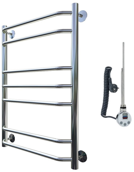 Внимание! Для скрытого монтажа электропроводки необходимо приобрести комплект скрытого подключения.Полотенцесушитель электрический комплектуется ТЭНом с терморегулятором и таймером.Изделие производится из нержавеющей стали AISI 201. Вертикальные трубы d -32 мм., для горизонтальных вставок используется труба d — 18 мм.Нагревательным элементом в полотенцесушителе является ТЭН. Полотенцесушитель заполнен бытовым антифризомЭкономичность: ТЭН нагревает антифриз до нужной температуры и выключается, далее при остывании полотенцесушителя он включается опять. Таким образом он работает не постоянно и получается, что ТЭН потребляет электричество не 300 Вт, а порядка 100 — 150 ВтМощность электрического прибора порядка 100 Вт при стоимости 1 Вт — 5 руб несложно посчитать: 100Вт х 24 = 2,4 кВт в сутки. Стоимость эксплуатации изделия за сутки 2,4 кВт х 5 руб. = 12 руб. При максимальной температуре расход электричества за 30 дней составит порядка 360 руб. При условии если сушка работает круглосуточно на максимальной температуре.Удобство монтажа: Полотенцесушитель крепится к стене на четыре держателя. Изначально ТЭН не установлен в полотенцесушитель для безопасной транспортировки, его можно установить, как справа, так и слева предварительно перевернув полотенцесушитель вверх ногами и выкрутив заглушку с нужной стороны на место в которое установится ТЭН.Примечание. Внимательно изучите инструкцию по установке ТЭНа!Скрытое подключение: Для скрытого монтажа электропроводки необходимо приобрести комплект скрытого подключения.Подключение в розетку: В комплекте с ТЭНом имеется шнур с вилкой, который будет необходим при подключении к розетке.