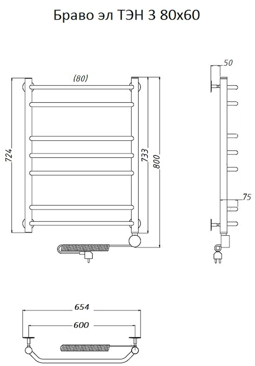 Электрический полотенцесушитель Тругор Браво 3 80x60см хром Браво3/элТЭН8060