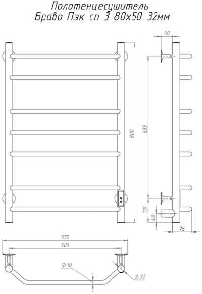 Электрический полотенцесушитель Тругор Браво Пэк сп 3 П с полкой 80x50см хром БравоПэксп3П/805032 купить
