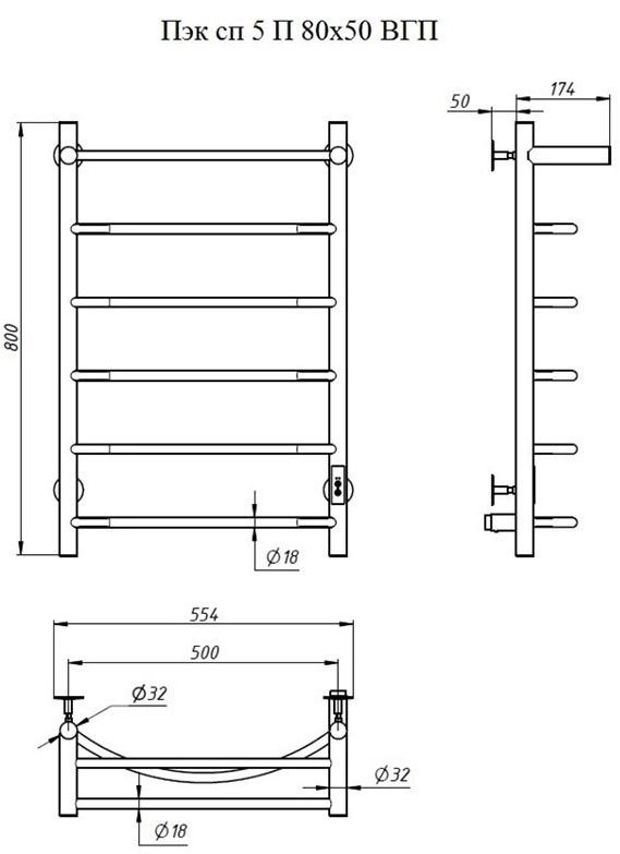ПЭК — Полотенцесушитель электрический кабельный. Изделие производится из нержавеющей стали AISI 201. Вертикальные трубы d -32 мм., для горизонтальных вставок используется труба d — 18 мм.Нагревательным элементом в полотенцесушителе является греющий кабель — аналог «теплого пола», кабель заправляется внутрь каждой трубы и передает тепло на поверхность изделия. Во включенном состоянии постоянно поддерживается температура 50-600.Экономичность: Полотенцесушитель снабжен панелью управления. Кнопка включения/выключения и таймер на 2 часа и 4 часа, который позволяет включать изделие на ограниченное время. Эта функция дает возможность экономить электричество.Мощность электрического прибора порядка 60W при стоимости 1 кВт — 5 руб несложно посчитать: 60W х 24 = 1,5 кВт в сутки. Стоимость эксплуатации изделия за сутки 1,5 кВт х 5 руб. = 7,5 руб. Максимальный расход электричества за месяц примерно 225 руб. При условии если сушка работает круглосуточно.Удобство монтажа: Полотенцесушитель крепится к стене на четыре держателя. Универсальное исполнение изделия позволяет подключить его, как справа, так и слева.Скрытое подключение: Благодаря приваренным в нижней части вертикальных труб двум распаячным коробкам, в которых соединяется электропроводка, возможно скрытое подключение к электричеству слева и справа.Подключение в розетку: В комплекте также имеется шнур с вилкой, который будет необходим при подключении к розетке.Панель включения:РЕЖИМ №1 — постоянный нагревРЕЖИМ №2 — работа в течение 2 часов с последующим отключением.РЕЖИМ №3 — работа в течение 4 часов с последующим отключением.