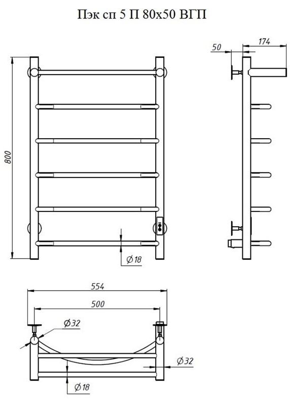 ПЭК — Полотенцесушитель электрический кабельный. Изделие производится из нержавеющей стали AISI 201. Вертикальные трубы d -32 мм., для горизонтальных вставок используется труба d — 18 мм.Нагревательным элементом в полотенцесушителе является греющий кабель — аналог «теплого пола», кабель заправляется внутрь каждой трубы и передает тепло на поверхность изделия. Во включенном состоянии постоянно поддерживается температура 50-600.Экономичность: Полотенцесушитель снабжен панелью управления. Кнопка включения/выключения и таймер на 2 часа и 4 часа, который позволяет включать изделие на ограниченное время. Эта функция дает возможность экономить электричество.Мощность электрического прибора порядка 60W при стоимости 1 кВт — 5 руб несложно посчитать: 60W х 24 = 1,5 кВт в сутки. Стоимость эксплуатации изделия за сутки 1,5 кВт х 5 руб. = 7,5 руб. Максимальный расход электричества за месяц примерно 225 руб. При условии если сушка работает круглосуточно.Удобство монтажа: Полотенцесушитель крепится к стене на четыре держателя. Универсальное исполнение изделия позволяет подключить его, как справа, так и слева.Скрытое подключение: Благодаря приваренным в нижней части вертикальных труб двум распаячным коробкам, в которых соединяется электропроводка, возможно скрытое подключение к электричеству слева и справа.Подключение в розетку: В комплекте также имеется шнур с вилкой, который будет необходим при подключении к розетке.Панель включения:РЕЖИМ №1 — постоянный нагревРЕЖИМ №2 — работа в течение 2 часов с последующим отключением.РЕЖИМ №3 — работа в течение 4 часов с последующим отключением.
