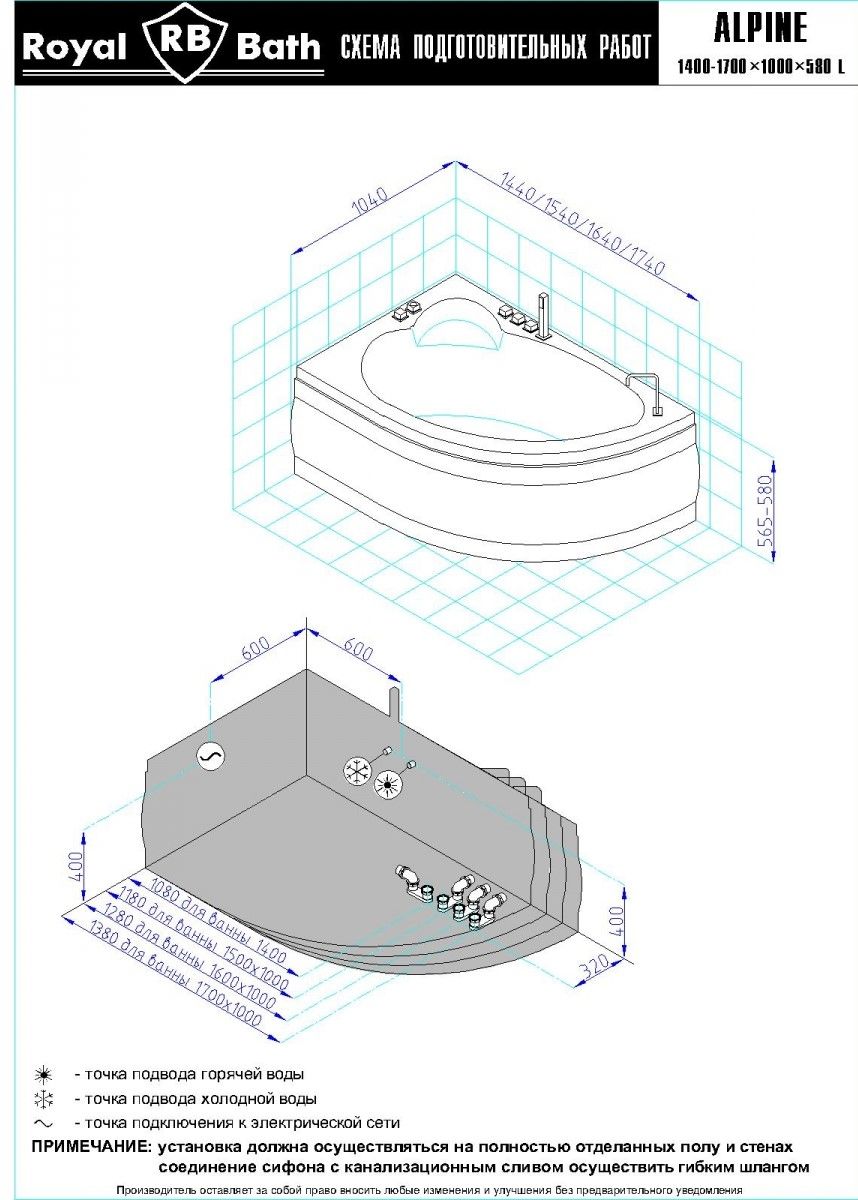 Акриловая ванна Royal Bath - идеальный выбор для создания атмосферы релакса и умиротворения, как в просторной в ванной комнате, так и в комнатном санузле. Основным преимуществом ванны из акрила считается её малый вес, высокая гигиеничность данного материала и низкая теплопроводность, долго сохраняющая комфортную температуру воды.Форма ванны Royal Bath замечательно подойдет к любому интерьерному решению, в различных вариантах размещения внутри ванной комнаты. Пристенная установка - это наиболее традиционный вид установки, а при использовании декоративного экрана пространство под ванной можно использовать как место хранения моющих средств. Оптимальная глубина позволяет принимать ванну с максимальным комфортом и полным расслаблением. Ванна Royal Bath выполнена со строгим соблюдением всех значительных элементов современного стиля.Благодаря тому, что родина бренда Royal Bath - Россия, можно смело быть уверенным в непревзойденном качестве и долговечности ванны, так как производство полностью соответствует стандартам качества. Акриловая ванна Royal Bath - это незаменимый, основной элемент любой ванной комнаты, без которого невозможно обойтись, ни в многоквартирном доме, ни в загородном коттедже.Комплектация гидромассажной ванны:- акриловая ванна Alpine 140x95x58;- каркас сварной к ванне Alpine 140;- панель к ванне Alpine 140;- гидромассажная система на 6 форсунок;- слив-перелив для ванны полуавтомат 60 см.Ожидаемый срок поставки 7 дней.Обратите внимание: данная позиция поставляется под заказ! Товар поставляется по 100%-ной предоплате.Данный товар является заказным и имеет индивидуально-определенные свойства.