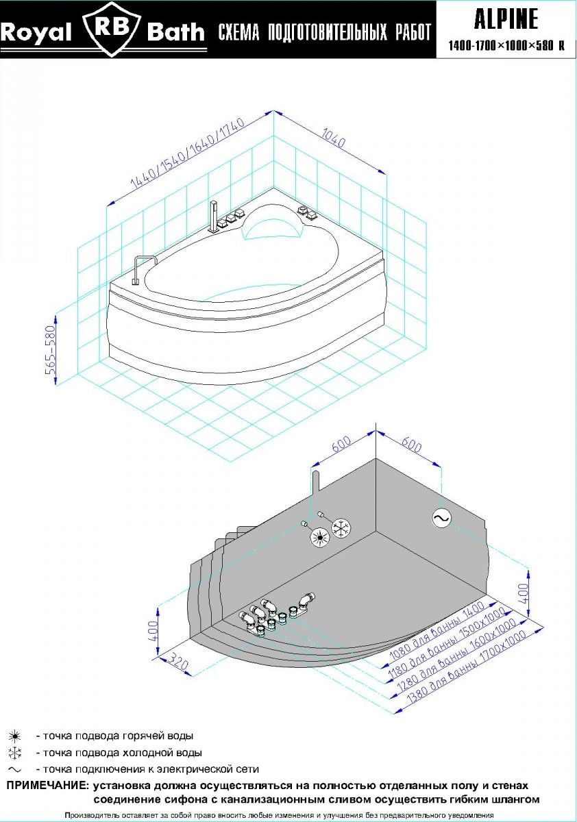 Акриловая ванна Royal Bath - идеальный выбор для создания атмосферы релакса и умиротворения, как в просторной в ванной комнате, так и в комнатном санузле. Основным преимуществом ванны из акрила считается её малый вес, высокая гигиеничность данного материала и низкая теплопроводность, долго сохраняющая комфортную температуру воды.Форма ванны Royal Bath замечательно подойдет к любому интерьерному решению, в различных вариантах размещения внутри ванной комнаты. Пристенная установка - это наиболее традиционный вид установки, а при использовании декоративного экрана пространство под ванной можно использовать как место хранения моющих средств. Оптимальная глубина позволяет принимать ванну с максимальным комфортом и полным расслаблением. Ванна Royal Bath выполнена со строгим соблюдением всех значительных элементов современного стиля.Благодаря тому, что родина бренда Royal Bath - Россия, можно смело быть уверенным в непревзойденном качестве и долговечности ванны, так как производство полностью соответствует стандартам качества. Акриловая ванна Royal Bath - это незаменимый, основной элемент любой ванной комнаты, без которого невозможно обойтись, ни в многоквартирном доме, ни в загородном коттедже.Комплектация гидромассажной ванны:- акриловая ванна Alpine 150x100x58;- каркас сварной к ванне Alpine 150;- панель к ванне Alpine 150;- гидромассажная система на 6 форсунок;- слив-перелив для ванны полуавтомат 60 см.Ожидаемый срок поставки 7 дней.Обратите внимание: данная позиция поставляется под заказ! Товар поставляется по 100%-ной предоплате.Данный товар является заказным и имеет индивидуально-определенные свойства.