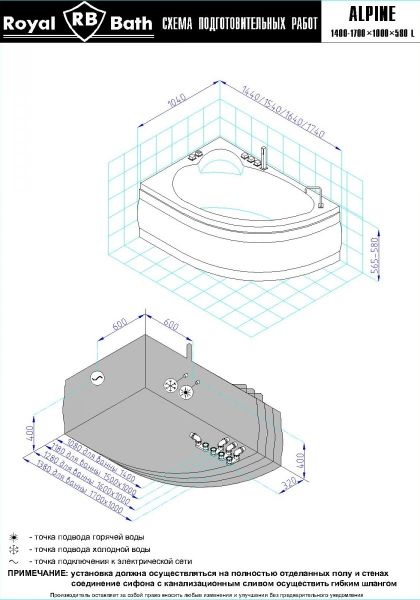 Акриловая ванна Royal Bath - идеальный выбор для создания атмосферы релакса и умиротворения, как в просторной в ванной комнате, так и в комнатном санузле. Основным преимуществом ванны из акрила считается её малый вес, высокая гигиеничность данного материала и низкая теплопроводность, долго сохраняющая комфортную температуру воды.Форма ванны Royal Bath замечательно подойдет к любому интерьерному решению, в различных вариантах размещения внутри ванной комнаты. Пристенная установка - это наиболее традиционный вид установки, а при использовании декоративного экрана пространство под ванной можно использовать как место хранения моющих средств. Оптимальная глубина позволяет принимать ванну с максимальным комфортом и полным расслаблением. Ванна Royal Bath выполнена со строгим соблюдением всех значительных элементов современного стиля.Благодаря тому, что родина бренда Royal Bath - Россия, можно смело быть уверенным в непревзойденном качестве и долговечности ванны, так как производство полностью соответствует стандартам качества. Акриловая ванна Royal Bath - это незаменимый, основной элемент любой ванной комнаты, без которого невозможно обойтись, ни в многоквартирном доме, ни в загородном коттедже.Комплектация гидромассажной ванны:- акриловая ванна Alpine 160x100x58;- каркас сварной к ванне Alpine 160;- панель к ванне Alpine 160;- гидромассажная система на 6 форсунок;- слив-перелив для ванны полуавтомат 60 см.Ожидаемый срок поставки 7 дней.Обратите внимание: данная позиция поставляется под заказ! Товар поставляется по 100%-ной предоплате.Данный товар является заказным и имеет индивидуально-определенные свойства.