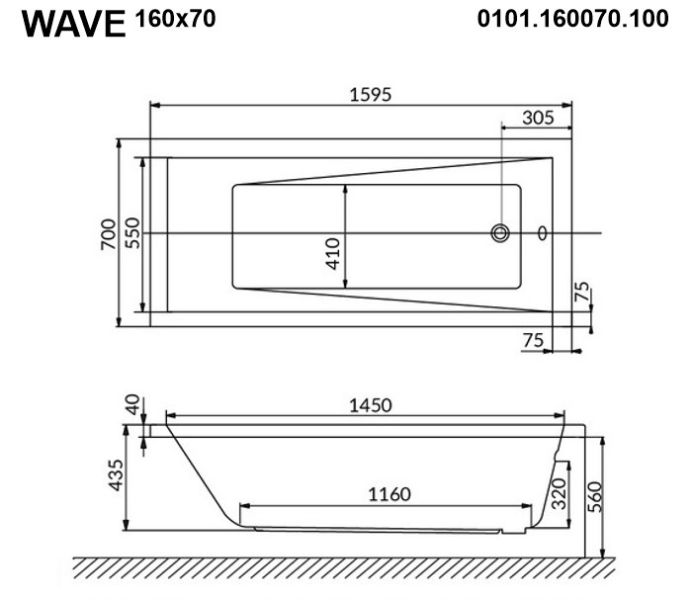 Гидромассажная ванна Whitecross Wave 0101.160070.100.SOFT.CR 160x70см Soft хром