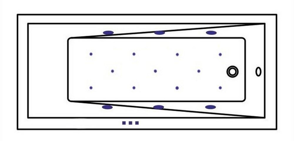 - Аэромассажная система (11 форсунок AERO-JET) с функцией регулировки интенсивности массажа;