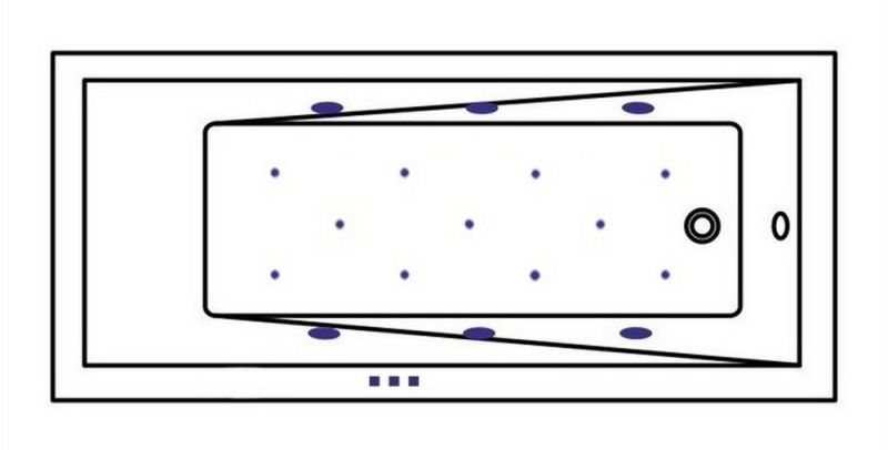 - Аэромассажная система (11 форсунок AERO-JET) с функцией регулировки интенсивности массажа;