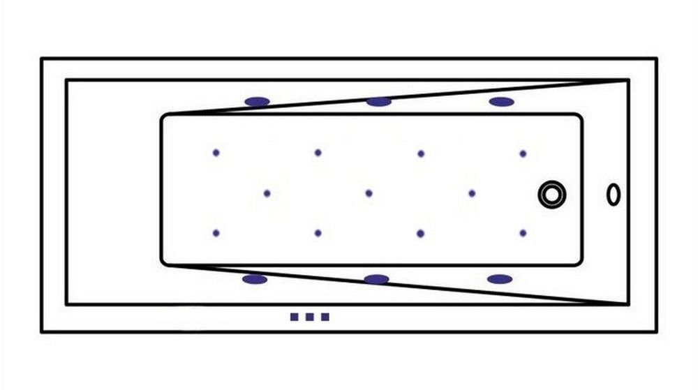 - Аэромассажная система (11 форсунок AERO-JET) с функцией регулировки интенсивности массажа;