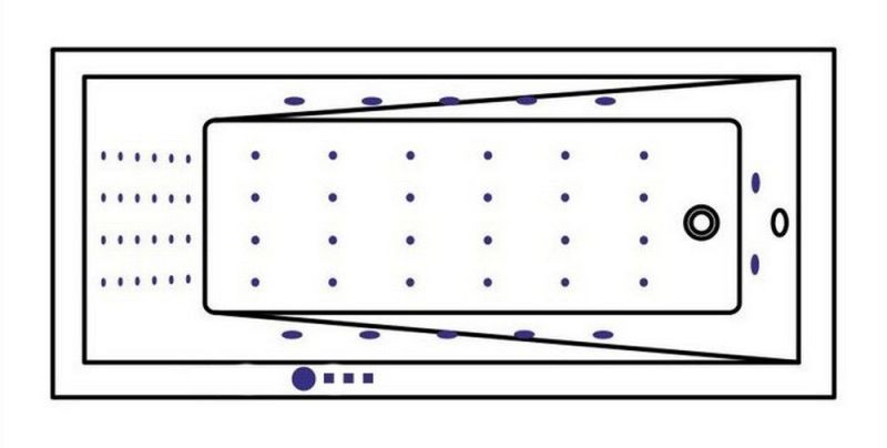 - Аэромассажная система (24 форсунок NANO-JET) с функцией регулировки интенсивности массажа;