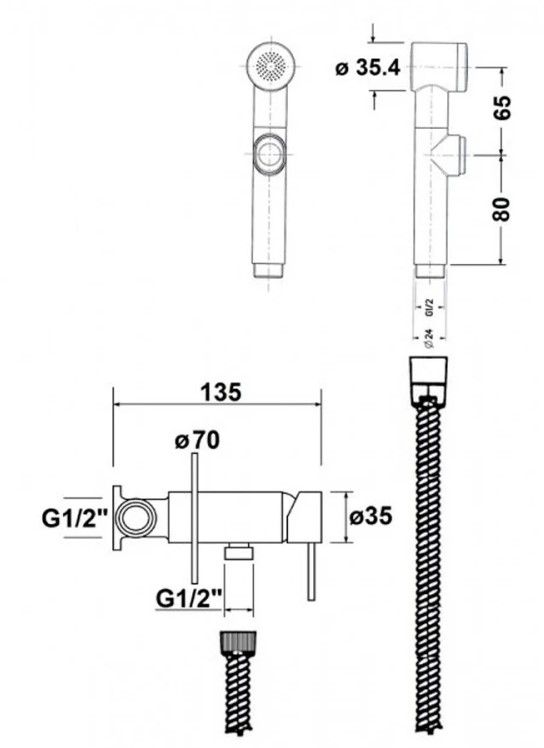 Готовый комплект гигиенического душа;скрытый монтаж;пластиковая лейка;хром.