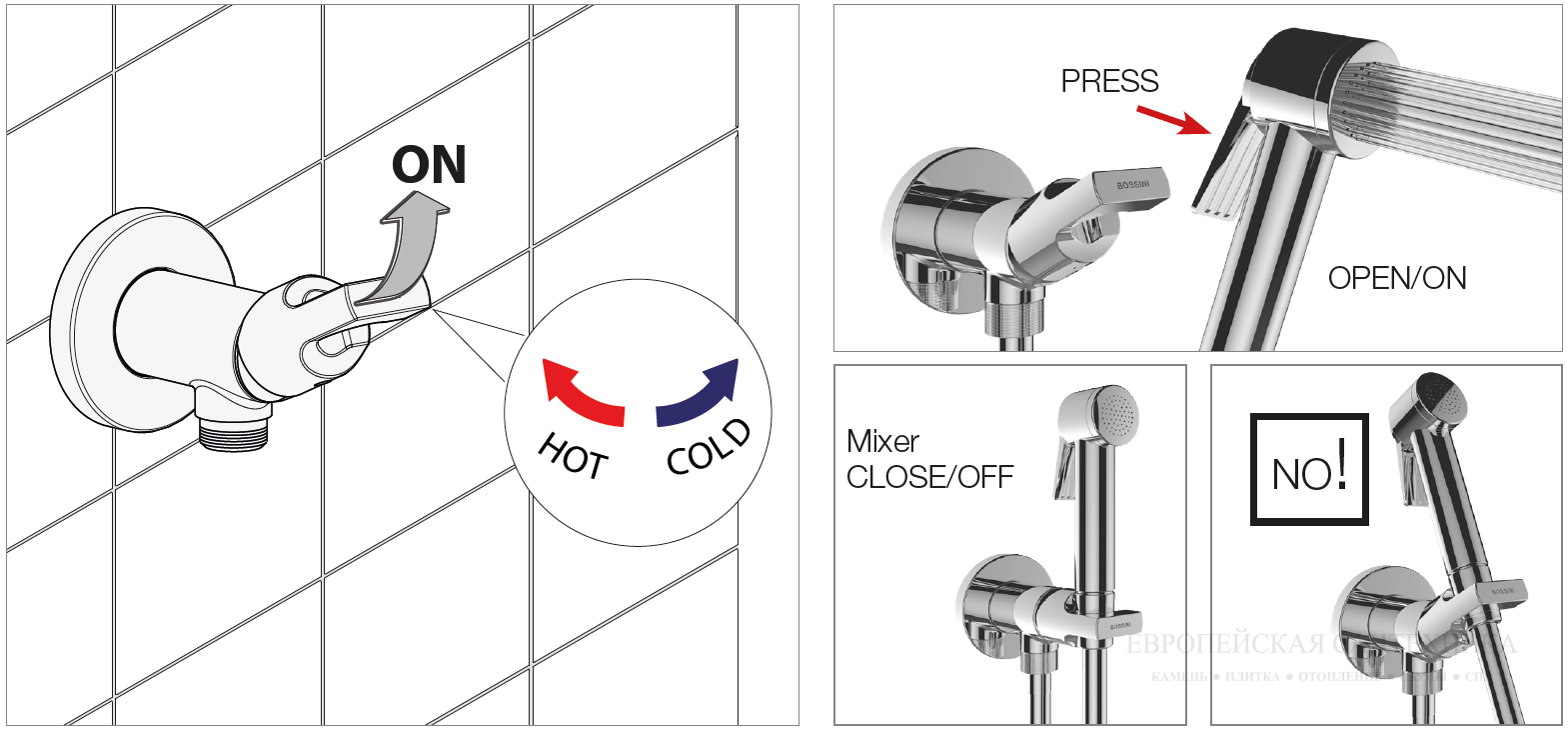 Гигиенический комплект Bossini - современное решение для людей, которые ценят не только удобство, но и стиль в мелочах. Однорычажный смеситель обеспечивает легкую настройку температуры и напора воды. Отличительной особенностью комплекта является душевая лейка с кнопочным управлением, которая мгновенно включает подачу воды, делая использование максимально комфортным.