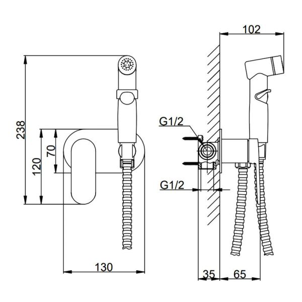В комплекте:Душевой шланг 120 см, С гигиеническим душем, Держатель лейки