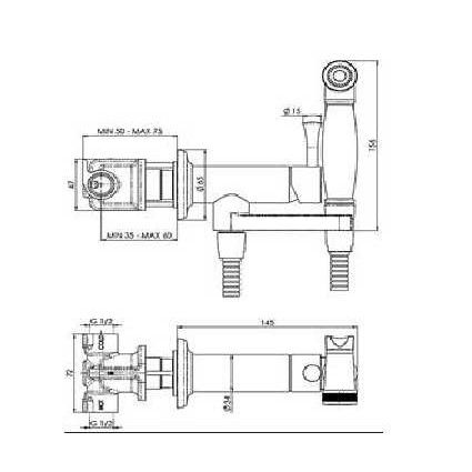 Гигиеническая лейка – латунная. Шланг 150 см, пластиковый.