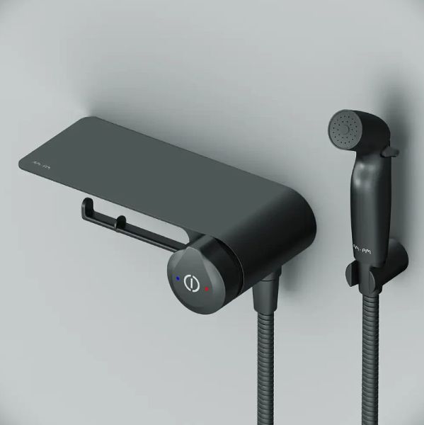 Гигиенический душ со смесителем AM.PM X-Joy TouchReel F0H85A822 Черный матовыйПервая в мире коллекция нажимных смесителей для ванной комнаты была создана в рамках коллекции X-Joy всемирно известным дизайн-бюро GP designpartners, Австрия.Интуитивная понятная система управления TouchReel для включения/выключения смесителя одним нажатием.Максимально простое управление температурой воды для тех, кто не хочет ничего настраивать. Весь продукт представляет собой удобную полочку, на которой можно разместить все, что необходимо вам под рукой. На интегрированном держателе можно размещать туалетную бумагу, а на крючке - полотенце.