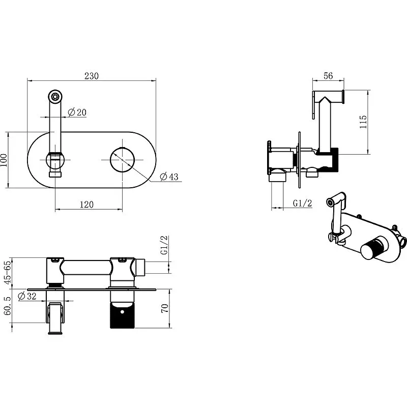 В комплекте поставки: cмеситель (внешняя и внутренняя часть), гигиенический душ со шлангом.ВНИМАНИЕ! Шланг и лейка не рассчитаны на постоянное запорное давление, после использования необходимо закрыть подачу воды в смесителе.Без использования обратных клапанов, возможен эффект, при котором горячая вода будет "передавливать" холодную воду. Тогда при смешивании горячая вода будет преобладать. В особых случаях вода на выходе из гигиенической лейки может быть очень горячей. Будьте осторожны.