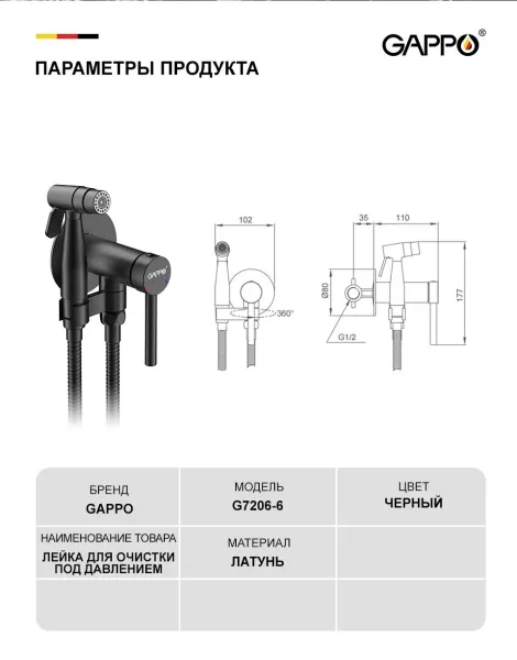 Выбирая гигиенический душ скрытого монтажа Gappo G7206-6 черный, вы получаете современное, функциональное и надежное решение для вашей ванной комнаты.