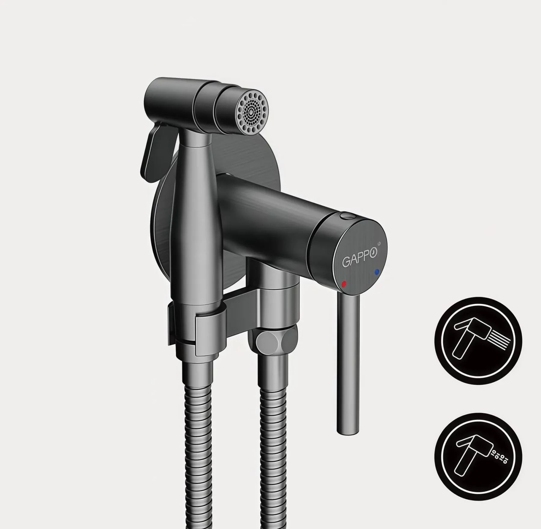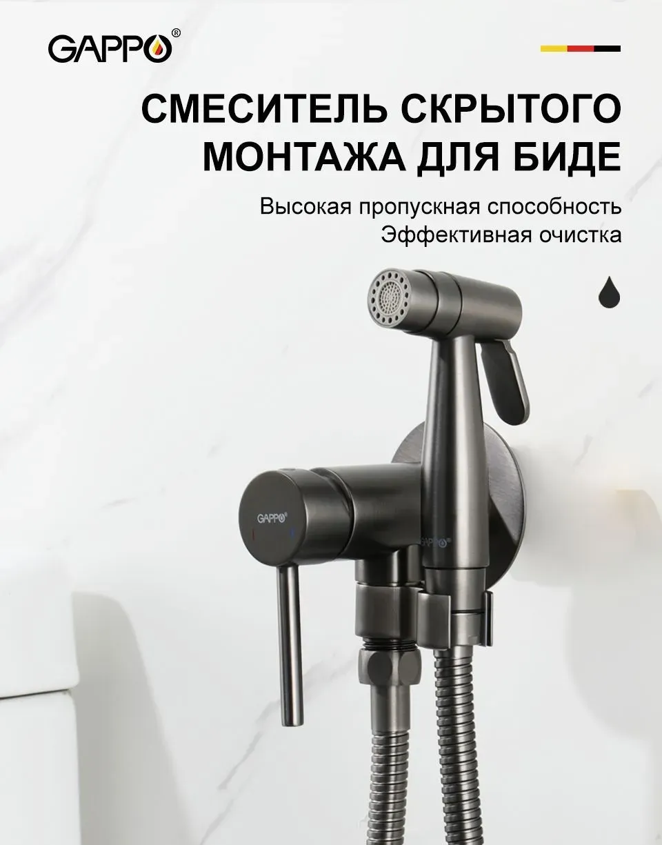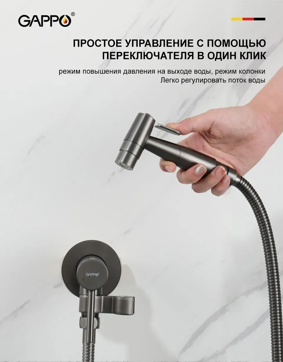 Гигиенический душ скрытого монтажа Gappo G7206-9 оружейная сталь - это современное и функциональное решение для вашей ванной комнаты.