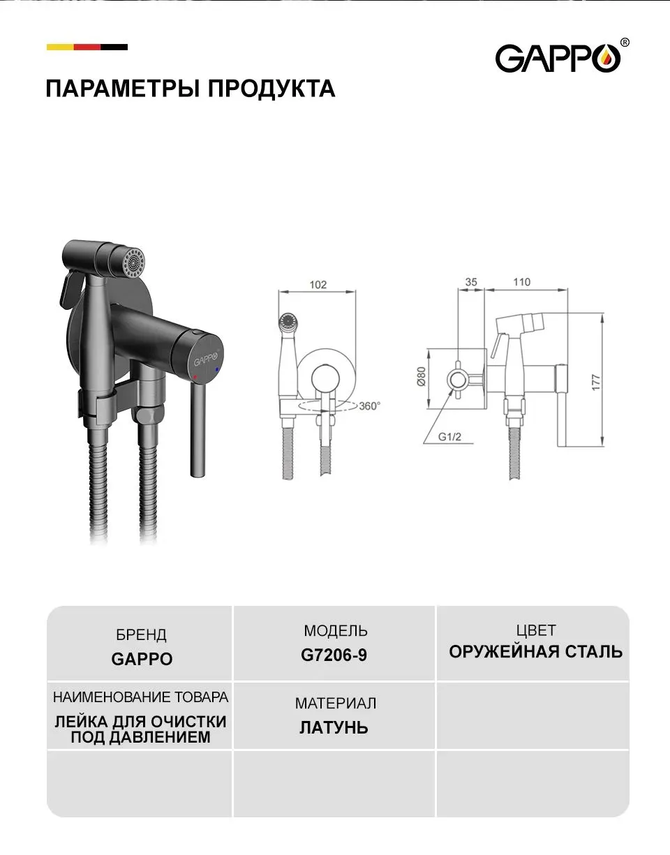 Выбирая гигиенический душ скрытого монтажа Gappo G7206-9 оружейная сталь, вы получаете современное, функциональное и надежное решение для вашей ванной комнаты.