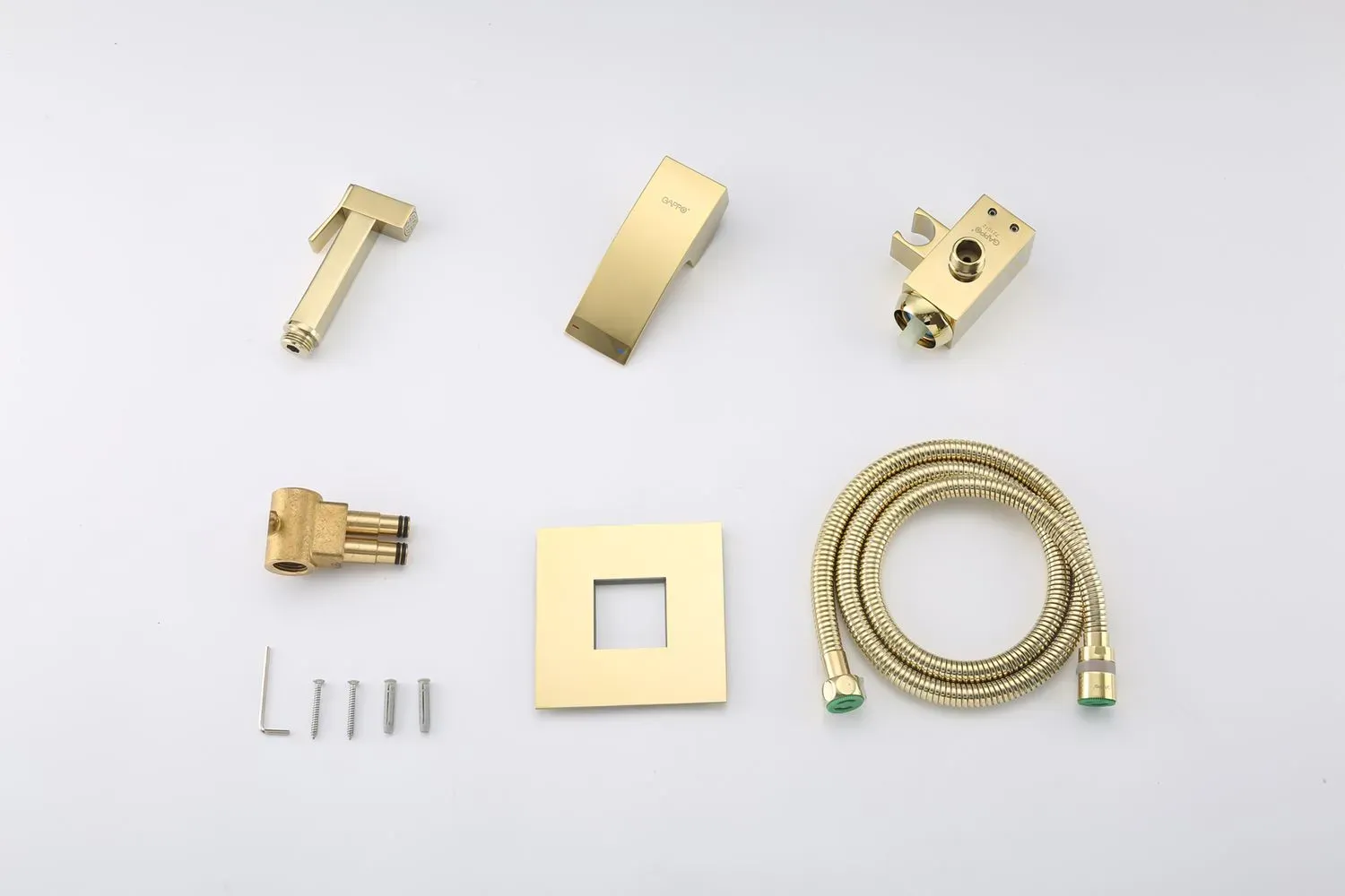 Смеситель гигиенический настенный скрытый монтаж Gappo G7207-3, золотой цвет, из латуни, гигиеническая лейка из металла, керамический картридж 35 мм.