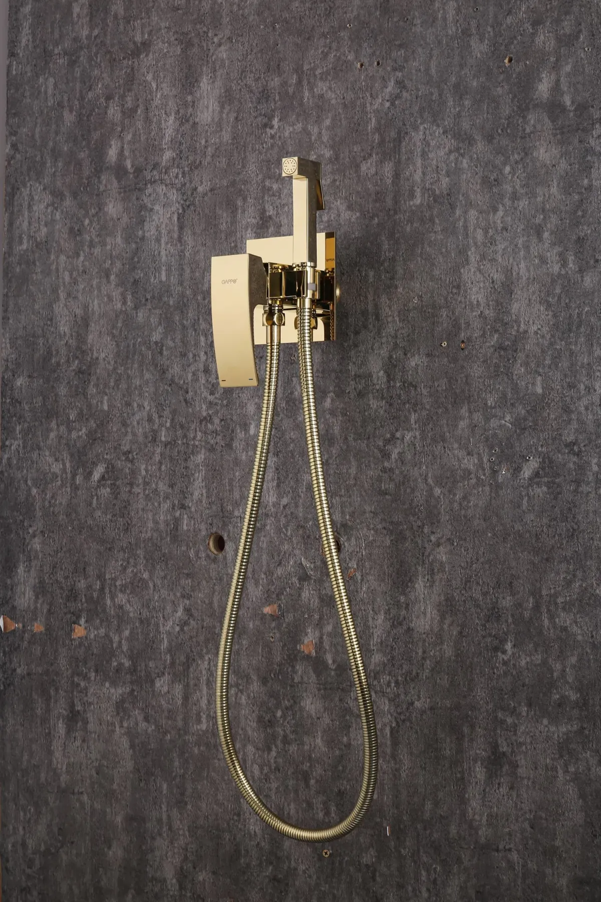 Смеситель гигиенический настенный скрытый монтаж Gappo G7207-3, золотой цвет, из латуни, гигиени... Подробнее
