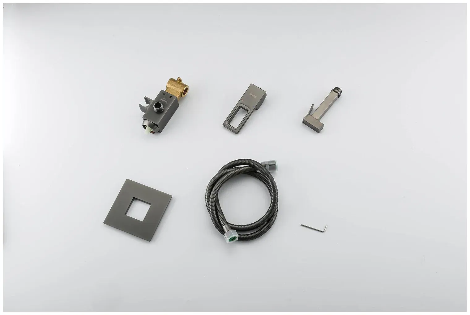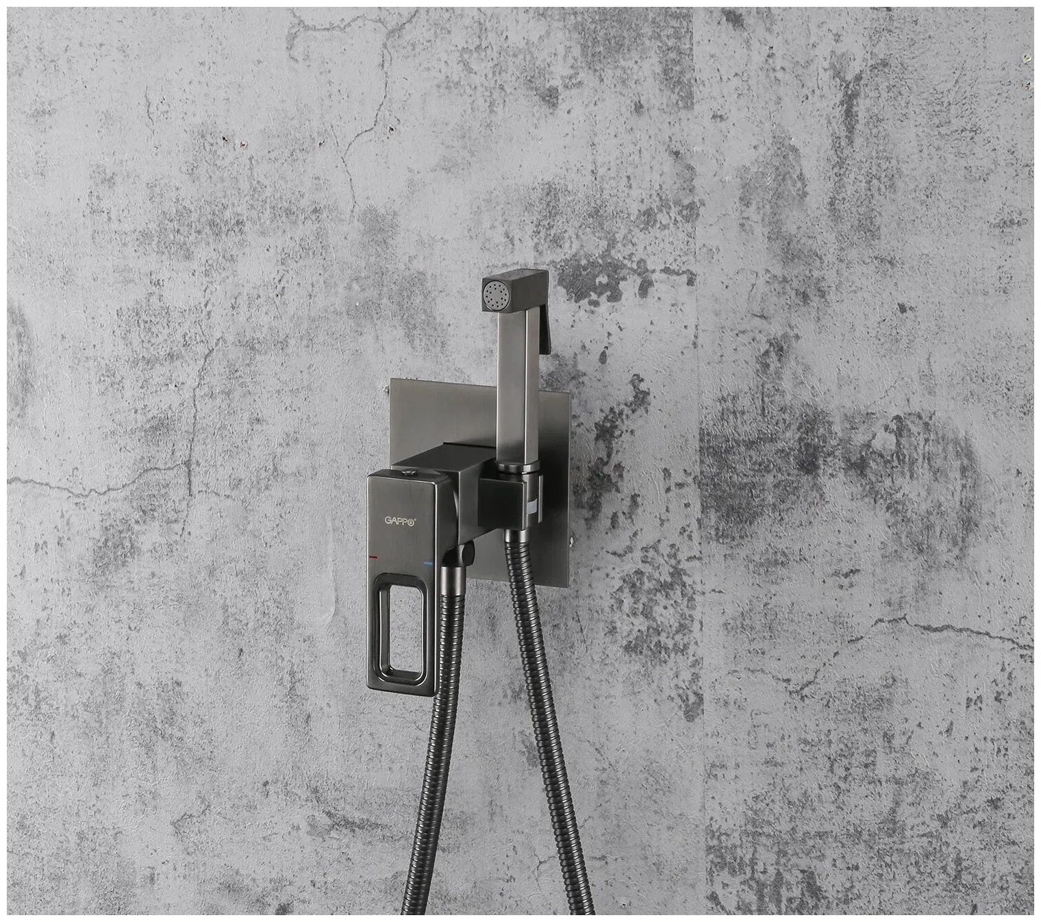 Смеситель встраиваемый Gappo G7217-9 с гигиеническим душем - элегантная однорычажная латунная модель в цвете "оружейная сталь". Гигиеническая лейка с нажимным механизмом крепится на корпусе смесителя. Душевой шланг в комплекте.