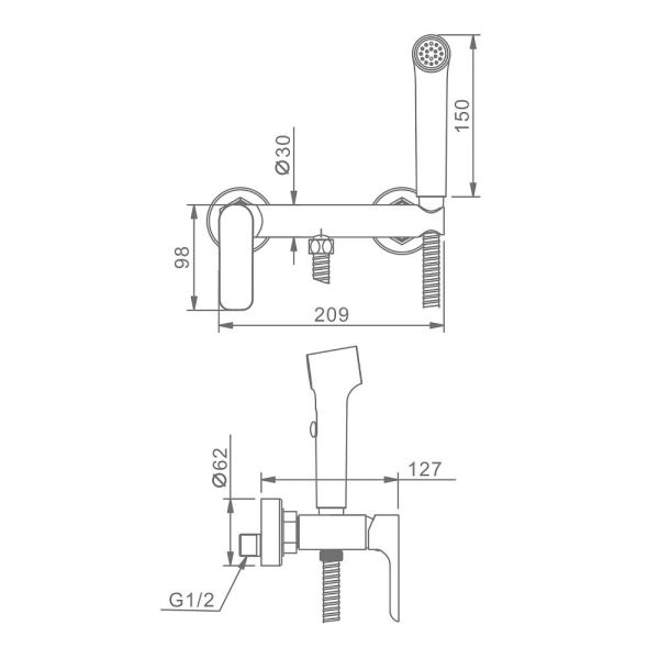 Гигиенический душ со смесителем Raglo R03.51.06 чёрный