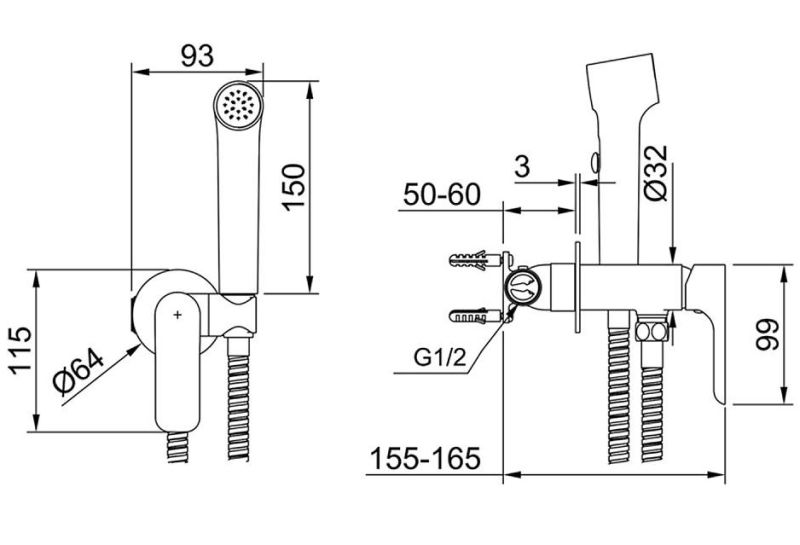 Гигиенический душ со смесителем Raglo R03.52.06 чёрный