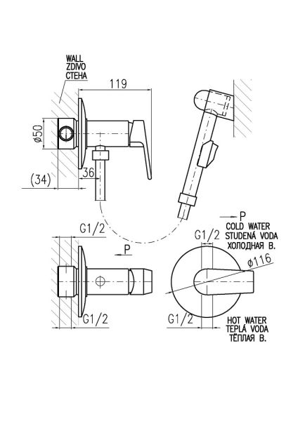 Гигиенический душ со смесителем Rav Slezak Colorado CO147/1BZ белый золотоАртикул