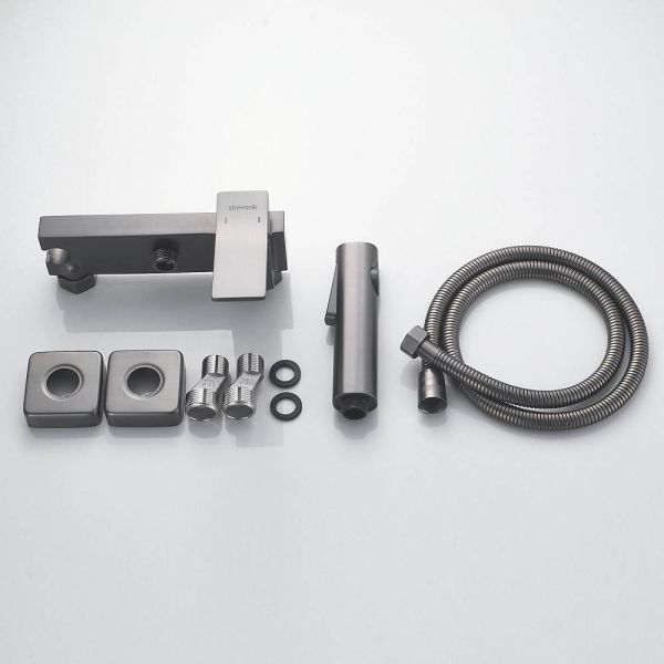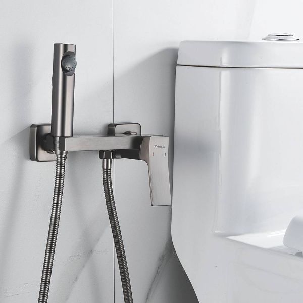 Гигиенический душ Shevanik со смесителем угловатой формы изготовлен из высококачественной латуни, обеспечивая прочность и долговечность. Уникальная конструкция корпуса смесителя выполнена в виде полочки для дополнительного удобства и хранения личных гигиенических принадлежностей.
