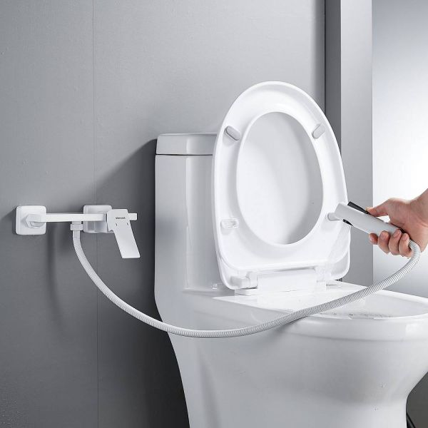 Гигиенический набор оснащен 120-сантиметровым шлангом с защитой от перекручивания, гарантируя комфортное использование без неприятных сюрпризов. Гигиеническая лейка изготовлена из ABS-пластика, что исключает повреждения напольного покрытия в случае случайного падения.