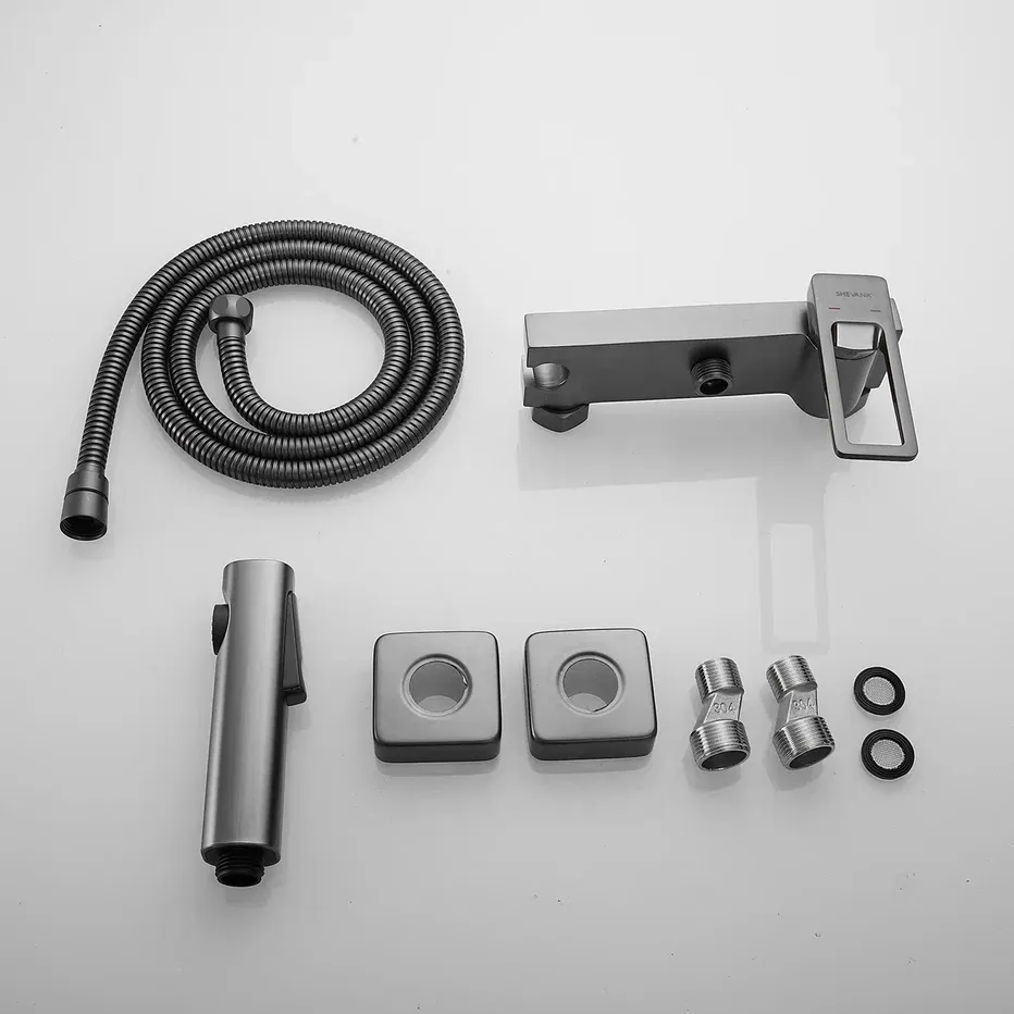 Гигиенический душ со смесителем Shevanik S6805T-1, оружейная сталь.Материал: латунь.Гарантия: 5 лет.Длина шланга: 150 см.