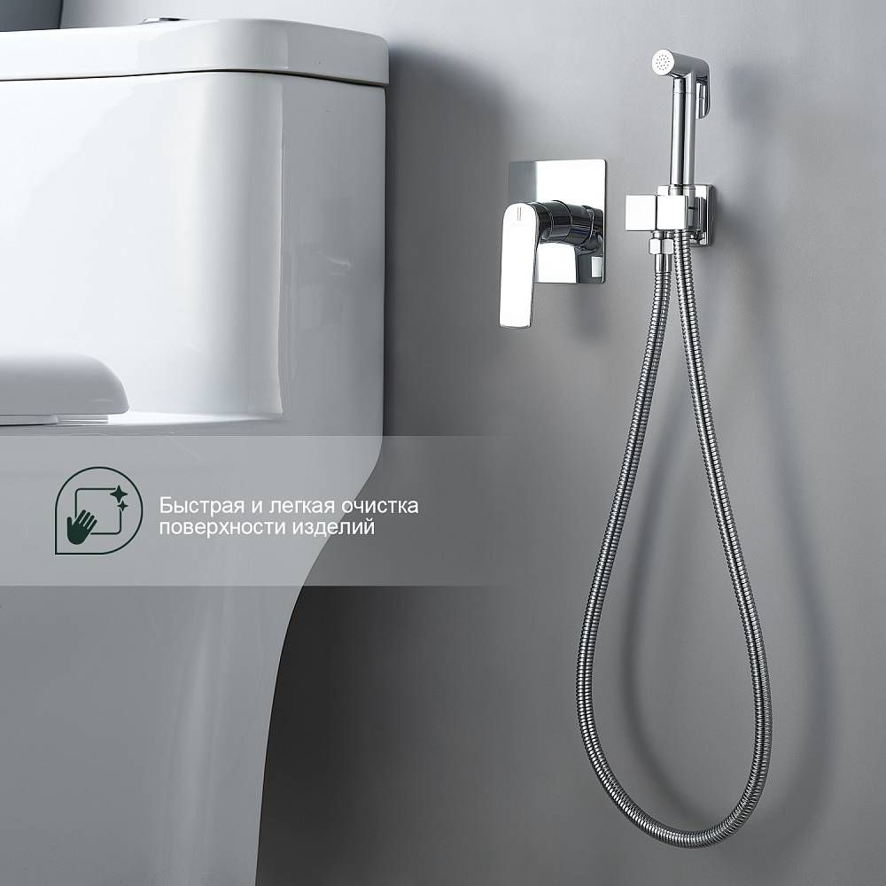 Гигиенический душ со смесителем представляет собой удобный альтернативный вариант стандартному биде. Шланг обладает достаточной длиной 120 см что вполне достаточно для комфортного использования. Лейка для гигиенического душа хорошо держится в руке и обеспечивает комфорт всех проводимых манипуляций с использованием биде для унитаза. В комплекте гигиенический душ, держатель лейки и душевой шланг . Душ гигиенический со смесителем настраивается как смеситель. Имеется нажимное переключение на душ и керамический картридж диаметром 30 мм. Присоединительный размер - G 1/2, предназначен для одного потребителя. Защита от обратного потока и ограничение температуры отсутствуют.