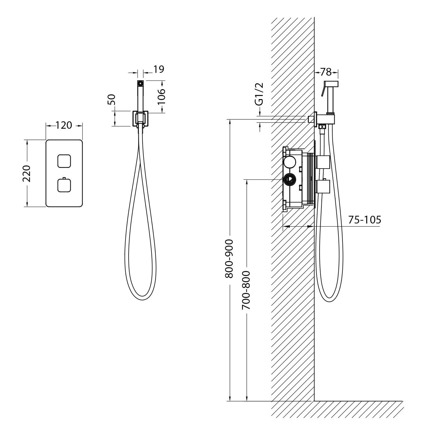 Цвет "матовое золото" никогда не выйдет из моды, во все времена драгоценный металл был признаком богатства. Встраиваемый смеситель с гигиеническим душем и термостатом Timo Petruma 5089 предназначен для монтажа в твердой или полой стене. Основные преимущества встроенного смесителя: элегантный внешний вид, все коммуникации и крепления спрятаны в стену, снаружи видны только декоративные элементы. Установить встроенный смеситель можно в любом месте. Регулировка температуры воды осуществляется ручкой термостата (расположена снизу), термостатический картридж поддерживает стабильную температуру воды. Управление смесителем осуществляется поворотом ручки (расположена сверху) влево. В положнии верхней ручки 12:00 смеситель выключен. Длины шланга 1,2 метра хватает для решения гигиенических задач. Можно также использовать например, для мытья собаки после прогулки или наполнения ведра воды и т.д. Смеситель отлично сочетается с инсталляцией для унитаза. Сложностей монтажа не возникает при установке смесителя опытным сантехником. Внимательно изучите инструкцию по монтажу и эксплуатации.