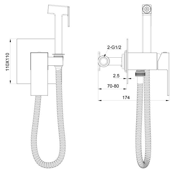 Гигиенический душ со смесителем Wonzon & Woghand Cube WW-88829016-BGM тёмный графит
