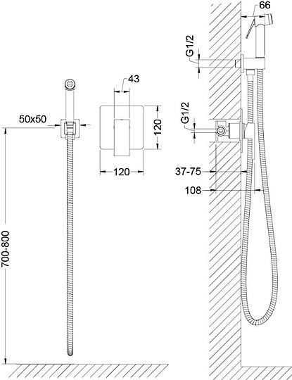 - Смеситель скрытого монтажа, с гигиеническим душем