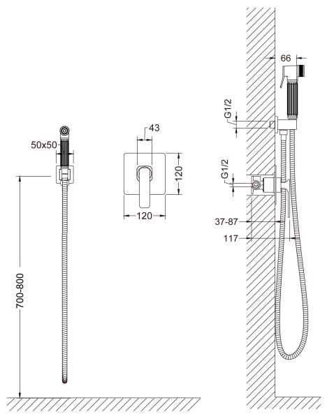 • Держатель лейки с подключением шланга (латунный) - 1 шт.