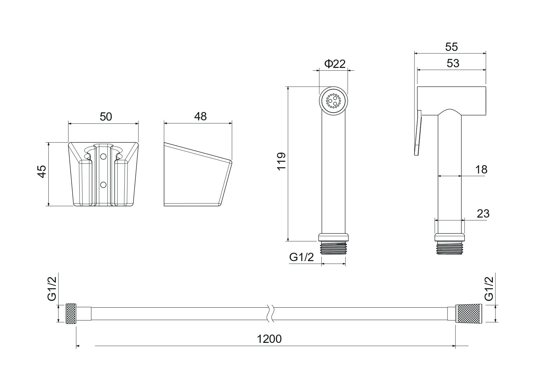 Гигиенический ручной душ Aquatek AQ2054BGM со шлангом и держателем шлифованный чёрный хром купить